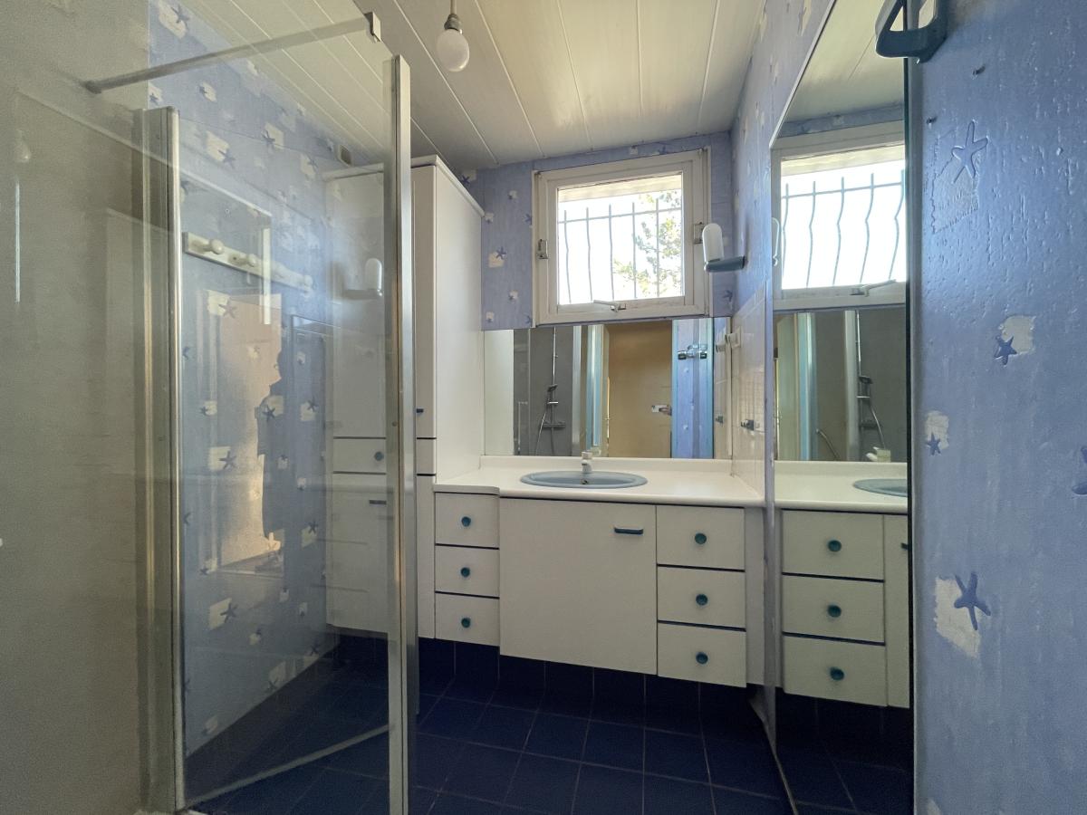 Cette maison construite en 1955 se compose aujourd'hui d'un petit sas d'entrée donnant accès à une pièce de vie avec partie cuisine aménagée et séjour, véranda, dégagements avec placard desservant deux chambres, salle d'eau, et w.c.
