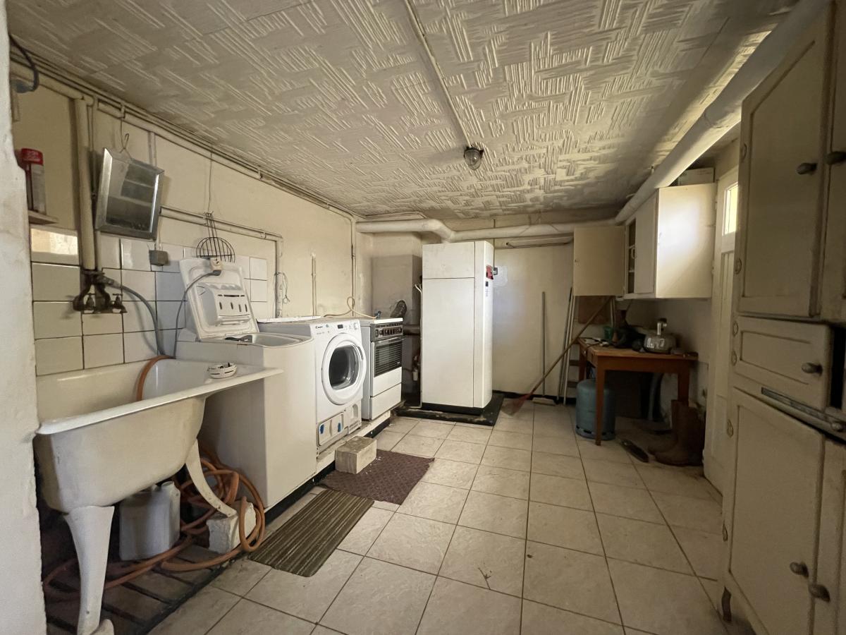 - au sous-sol : ancien garage transformé en pièce carrelée, une autre pièce avec cuve à fioul, salle d'eau avec w.c. (a priori non raccordée), atelier et cave.